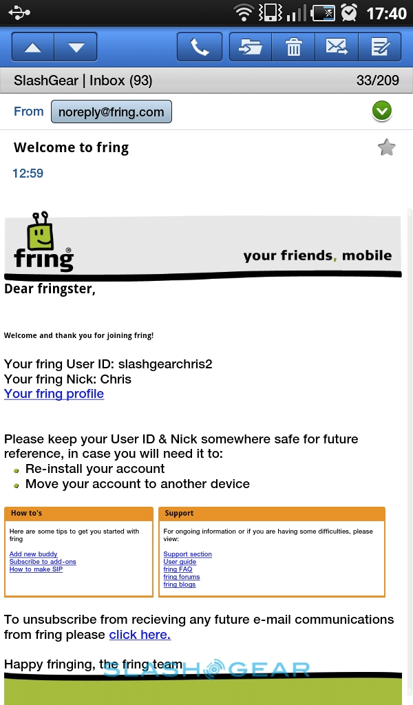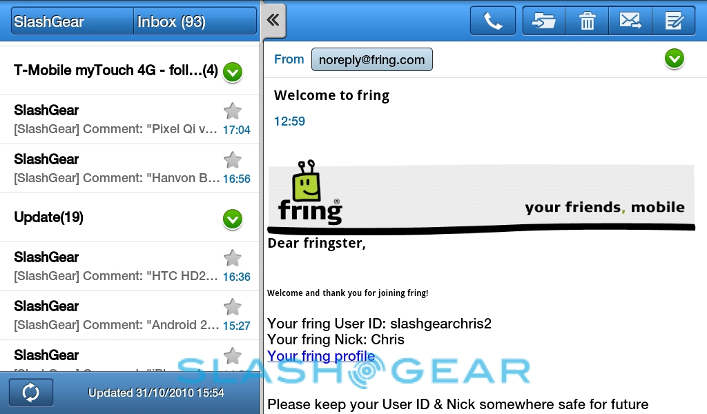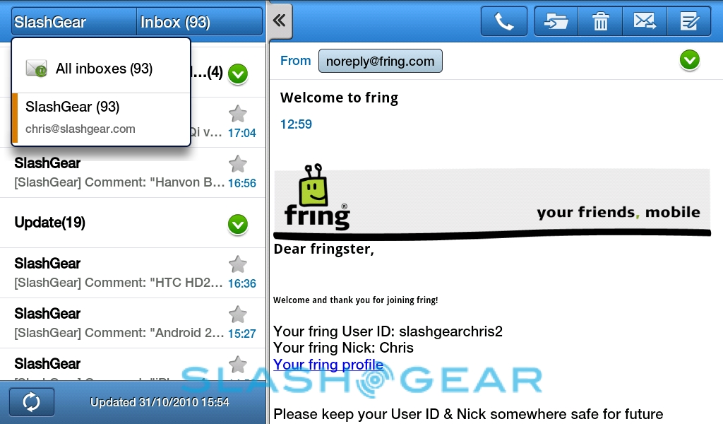 As for the email app, that's reminiscent of Apple's client on the iPad. In portrait orientation you can flip between a full inbox list and individual messages, while in landscape there are two (width adjustable) columns for inbox and preview. Messages can be viewed individually or grouped into conversations; the only thing missing is the ability to select multiple emails at once for mass-deletion.