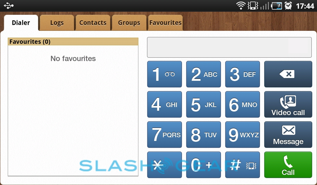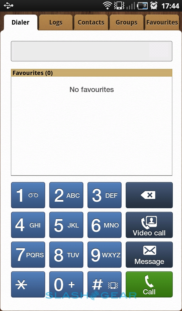 The dialler is just another tab in the Contacts app, and shows a shortcut list of any numbers you've set as favorites as well as the usual numeric keypad. Since 3G video calls are supported there are actually two dial buttons, the regular voice call key and a video call key. If you've installed a third-party VoIP app – such as Skype or Google Voice – Android will offer you the usual choice of calling routes when you hit dial.