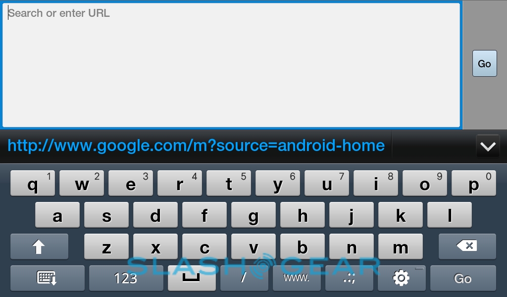 As for text entry, Samsung has loaded its own QWERTY keyboard with portrait and landscape orientation support, together with the Swype keyboard that allows you to drag your finger between letters to form words, rather than tapping them individually. Swype works well, but Samsung's keyboard benefits from various dynamic layouts: .com and prominent @ buttons in email or browser address views, for instance. It also supports auto-completion, spelling correction, next word prediction and double-tapping the space bar to automatically append a period. In general it all works very well, though we turned the default haptic feedback off as the Galaxy Tab's vibration motor makes a noticeable buzzing sound.