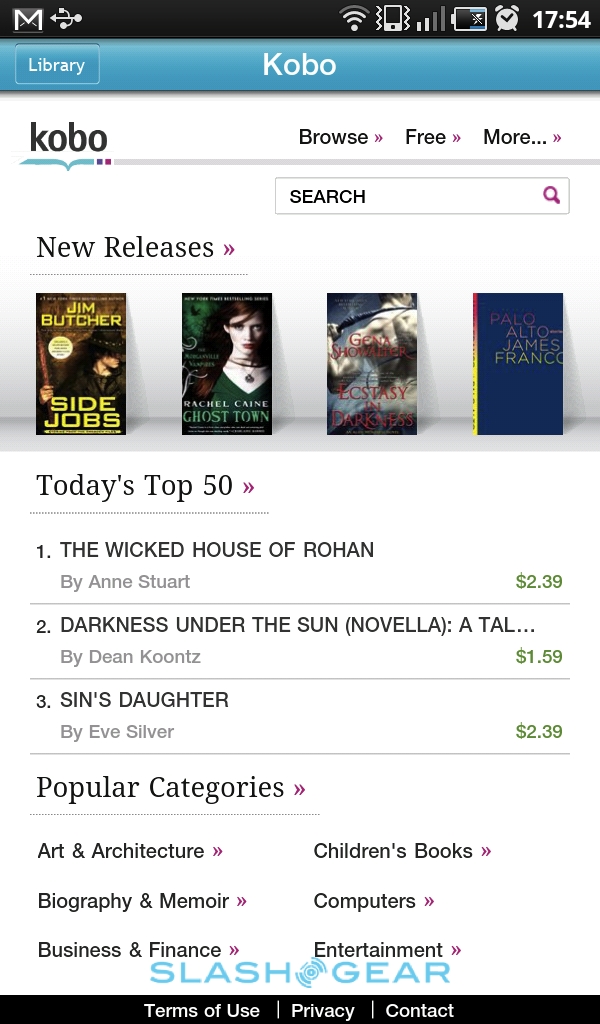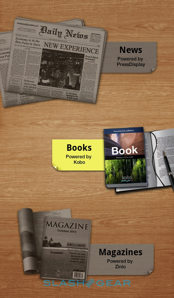 Finally there are ereading apps, of which the Galaxy Tab has two. First is the simply-titled eBook, a basic digital bookshelf which allows you to import your own EPUB titles; The Marvelous Land of Oz was preloaded on our European unit. More comprehensive is the Reader Hub, which will offer access to Kobo's ebook store, PressDisplay's news and Zinio's digital magazines. At present, only Kobo functionality is active, with a range of free and paid titles on offer; you'll need to register an account with the service to access either. Of course, there's also Barnes & Noble's NOOK app and Amazon's Kindle app available in the Android Market, so if you've already bought ebooks from other services it's possible to read them on the Galaxy Tab as well. Whichever app you choose, the high-resolution display and strong backlighting make for a good ereader experience both indoors and in daylight.