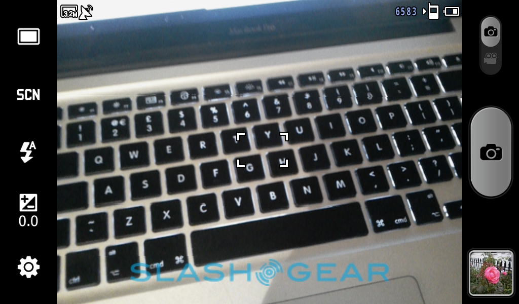 For photography, five shooting modes are on offer (single, continuous, panorama, smile shot and self-shot, the latter flipping to the front-facing camera) and five scene modes (portrait, landscape, night, sports and off). From the settings menu it's possible to change white balance (auto, daylight, cloudy, incandescent and fluorescent), effects (normal, negative, black & white and sepia), ISO (auto, 100, 200 and 400) and image quality (normal, fine and superfine). The main camera can shoot up to 2048 x 1536 stills.