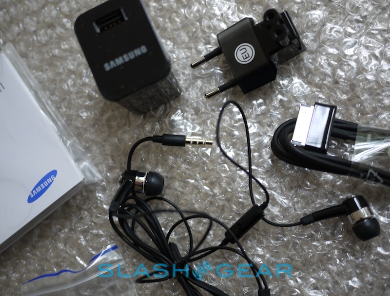 Samsung has a range of official accessories for the Galaxy Tab, a side-effect being that you don't get much in the box with the slate itself: a power adapter, USB sync cable, stereo headset and some printed documentation. We'd like to have seen a case or pouch of some sort, at the least.
