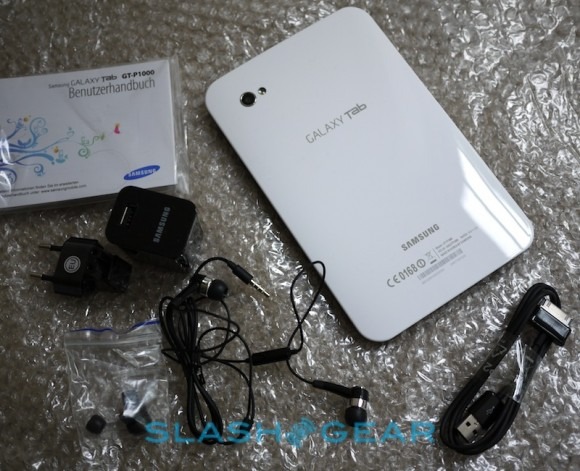 Samsung has a range of official accessories for the Galaxy Tab, a side-effect being that you don't get much in the box with the slate itself: a power adapter, USB sync cable, stereo headset and some printed documentation. We'd like to have seen a case or pouch of some sort, at the least.