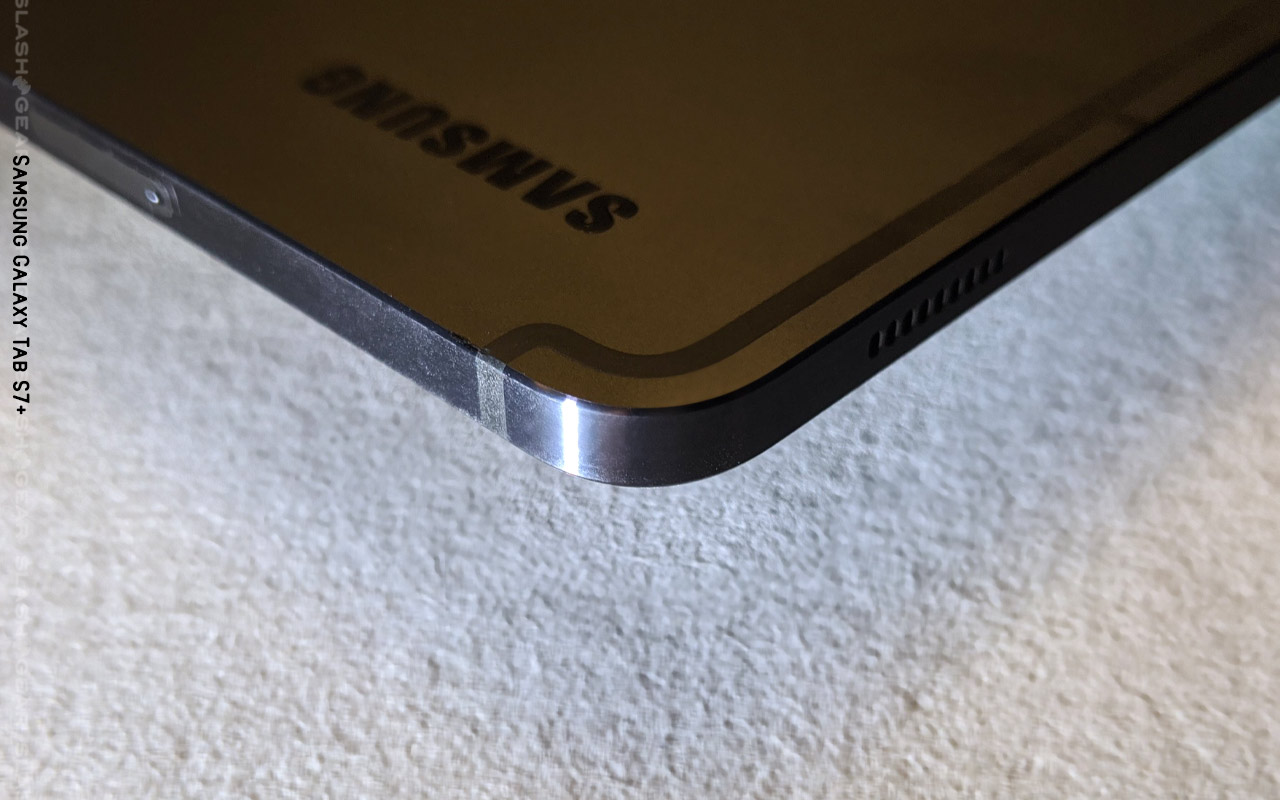 The Samsung Galaxy Tab S7+ is a solid piece of hardware. It's 285 x 185 x 5.7 mm (11.22 x 7.28 x 0.22 in) in size and weighs in at 1.27 pounds (575g) and that's a good thing. Because of the weight and the materials with which this device is constructed, it feels like a professional piece of industrial design.