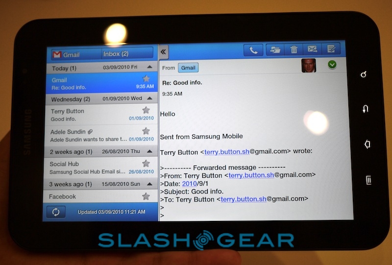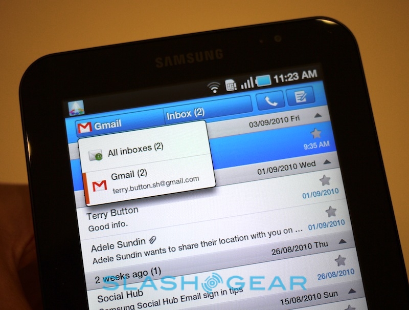 While Samsung has ticked all the boxes for Android Market inclusion, of course most current apps aren't scaled appropriately for the slate's 1024 x 600 display. To accommodate that, the company has built in some clever app-resizing that stretches standard software (say, designed for WVGA smartphones). While you might expect apps to look blocky, the end result is actually pretty impressive; we'd say it looks better than, say, iPhone apps running on the iPad, and it's all done automatically and supports screen rotation (if the app itself does).