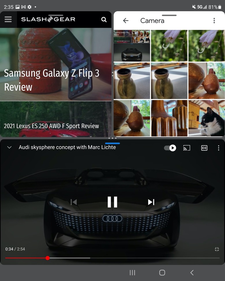 Web-browsing and watching videos on a big screen is, obviously, more pleasant. Some apps – though by no means all – have a UI that reflows to take advantage of the Fold 3's 7.6-inches. In Gmail, for example, you get two columns in portrait orientation and three if you rotate the phone 90-degrees.