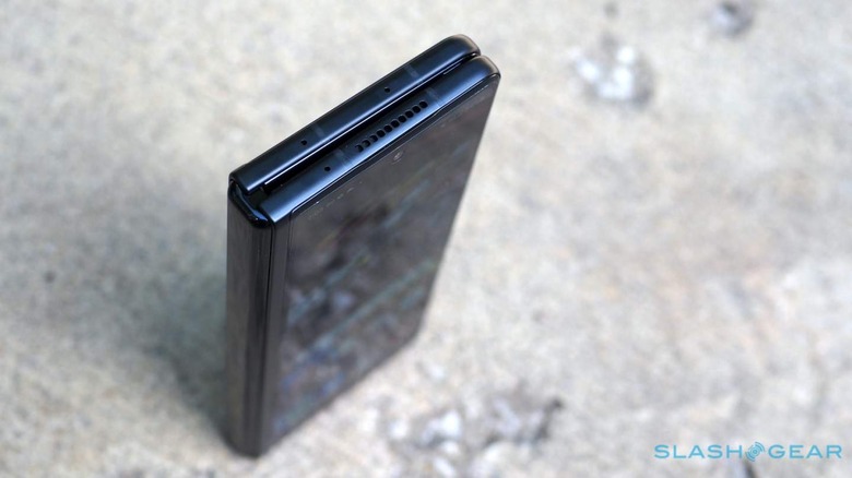 Samsung says its flexible screen tech is sturdier and more glass-like than ever before, not to mention tested with hundreds of thousands of folds. There's IPX8 water resistance too, but no dust resistance: sand and grit remain the enemy of moving components, and while the Fold 3 may cover most of its points-of-entry, that's not infallible. Opening the screen one-handed is pretty much impossible, given the strength of the magnets and stiffness of the hinges, and trying to close it one-handed while avoiding pressing your thumb into the crease is tricky too.