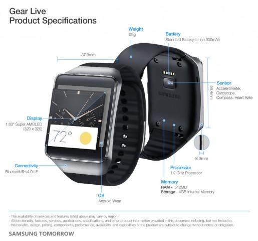 This smartwatch will roll out with a 1.2GHz Qualcomm Snapdragon 400 processor of unknown origin inside of a body with a 1.63-inch Super AMOLED display with 320 x 320 pixels across its face. You'll be working with a Heart Rate Monitor, Bluetooth 4.0, and a number of sensors: Accelerometer, Gyroscope, and Compass.