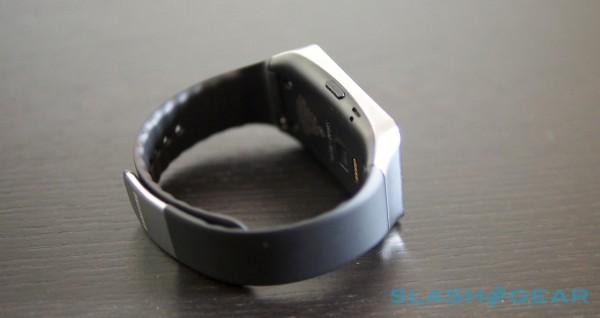 That's because, rather than regular buckle, the Gear Live has two little metal studs that have to be popped into matching holes on the strap. Pushing them in requires no small amount of pressure, as well as lining the two ends of the highly-springy strap up perfectly: you can do it more easily if you rest the watch face-down on a desk or your thigh, but it's nowhere near as straightforward as LG's version.