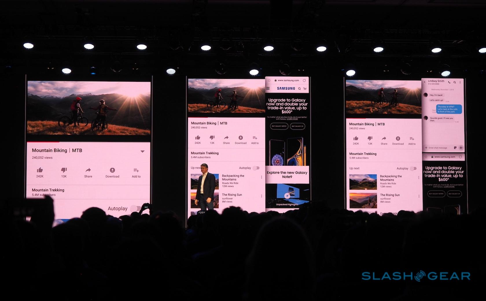 Inside, Samsung has a system they call "Multi Active Window." This is new to Samsung, and new to Android. It extends the Android experience to multiple spaces at once. We'll likely see more of this action once Samsung gets closer to manufacturing time.