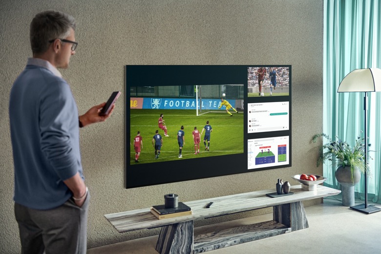You still get individually controlled pixels and the dedicated MicroLED processor, along with a 99.99-percent screen to body ratio. Each pixel supports infinite contrast, Samsung promises, along with extreme HDR with up to 2,000 nits of brightness. There's also Multi View, which allows up to four sources to be shown on one screen simultaneously: that, if you have the 110-inch MicroLED, means effectively four 55-inch TVs in one.
