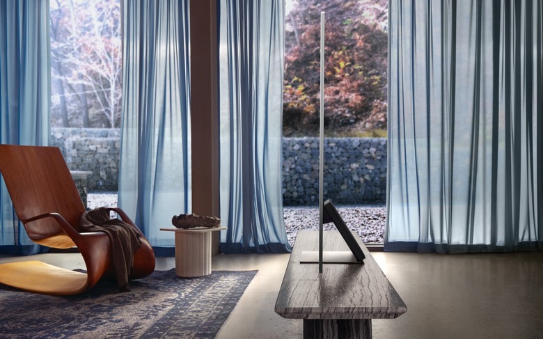 The hardware itself has an Infinity Screen bezel-free design, which basically means that though there's a "Pure Metal Plate" surround you're probably not going to notice it from the typical viewing distance. Ambient Mode allows it to blend into the wall by matching the paint color. OTS Pro (Object Tracking Sound) pairs surround sound aligned with what's happening on-screen for more directionality, with two extra tweeters to power it.