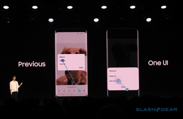 "Hardware and software must work together in perfect harmony," Jee Won Lee, Senior Designer of UX Design at Samsung, said of the new interface. That means the rounded corners of the devices being echoed in the iconography and other UI elements, but also a more esoteric interpretation. As phones have got bigger, Lee pointed out, so they've shifted further away from something you can use single-handed.