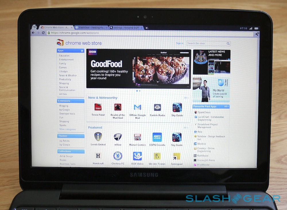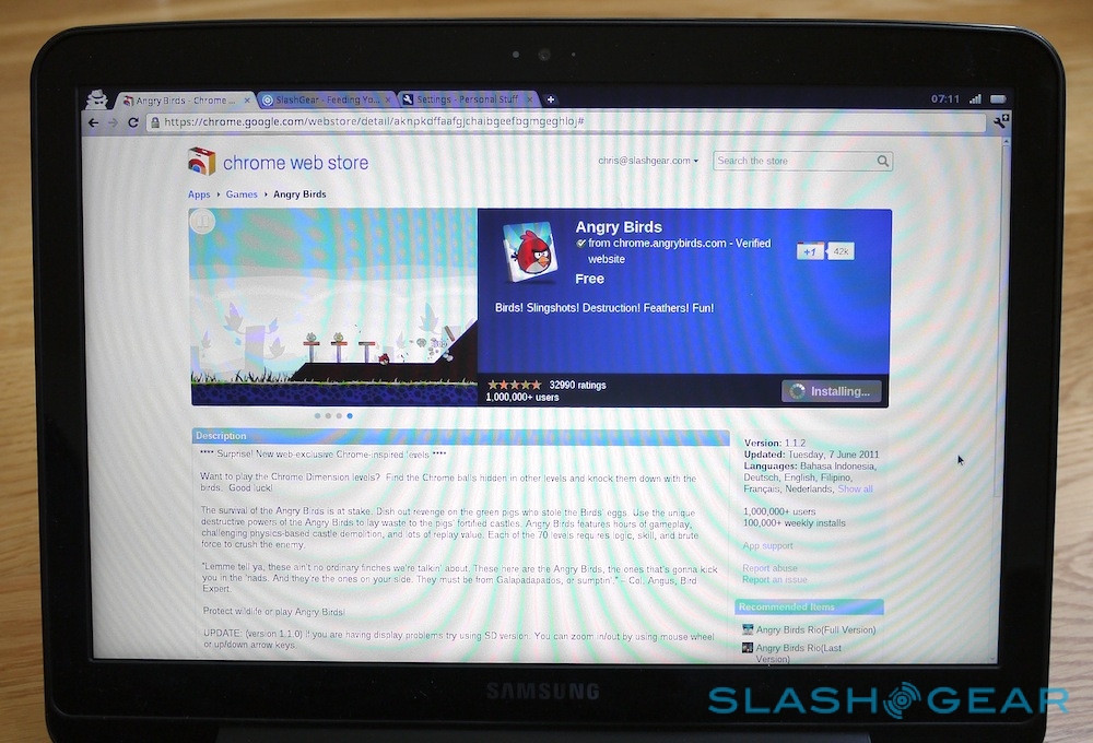 Unfortunately, around about here is where things start to go rough at the edges. Angry Birds may be a suggested game in the Chrome App Store, but it doesn't play nicely with the Atom CPU. Glitchy graphics are something we didn't expect to see on a title that plays problem-free on our phone. Full HD YouTube videos were also more than the Series 5 could cope with, though 720p was manageable. Other cloud services – like Spotify, for instance – fall foul of the missing local app support; their music catalogs may be online, but they require a local client in order to access them.