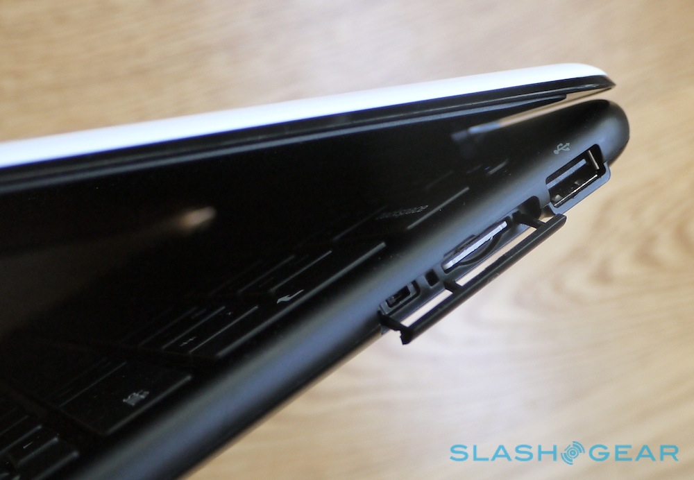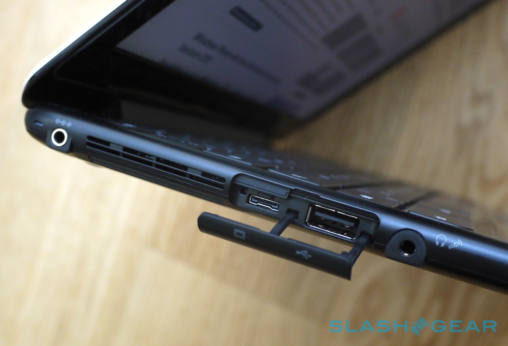 We may be expected to start our new lives scurrying around the internet pipes, but Samsung and Google do at least realize that we still have peripherals we might want to plug in. Ports on the Series 5 include a proprietary VGA out (with a bundled adapter cable in the box) and two full-sized USB 2.0, along with a mic/headphones combo, a SIM slot (with a Three SIM preloaded) and a full-sized SD card reader. No ethernet port, however, with WiFi b/g/n or, on certain models, 3G to get you connected.