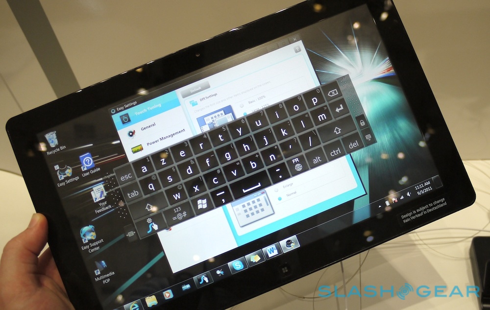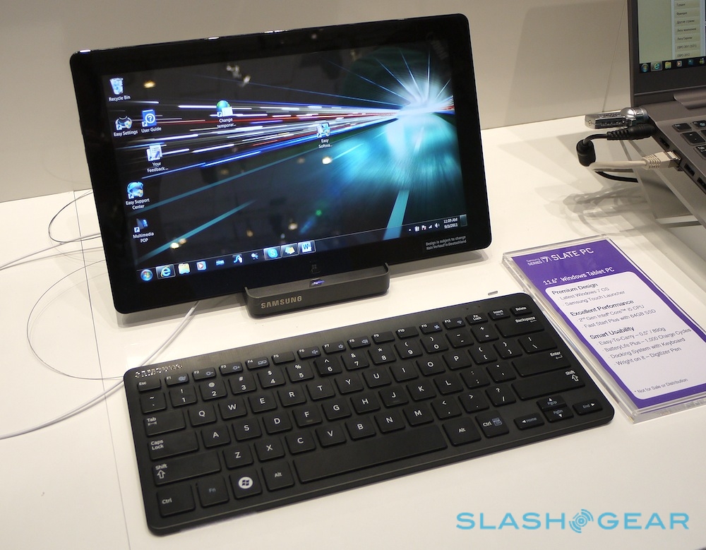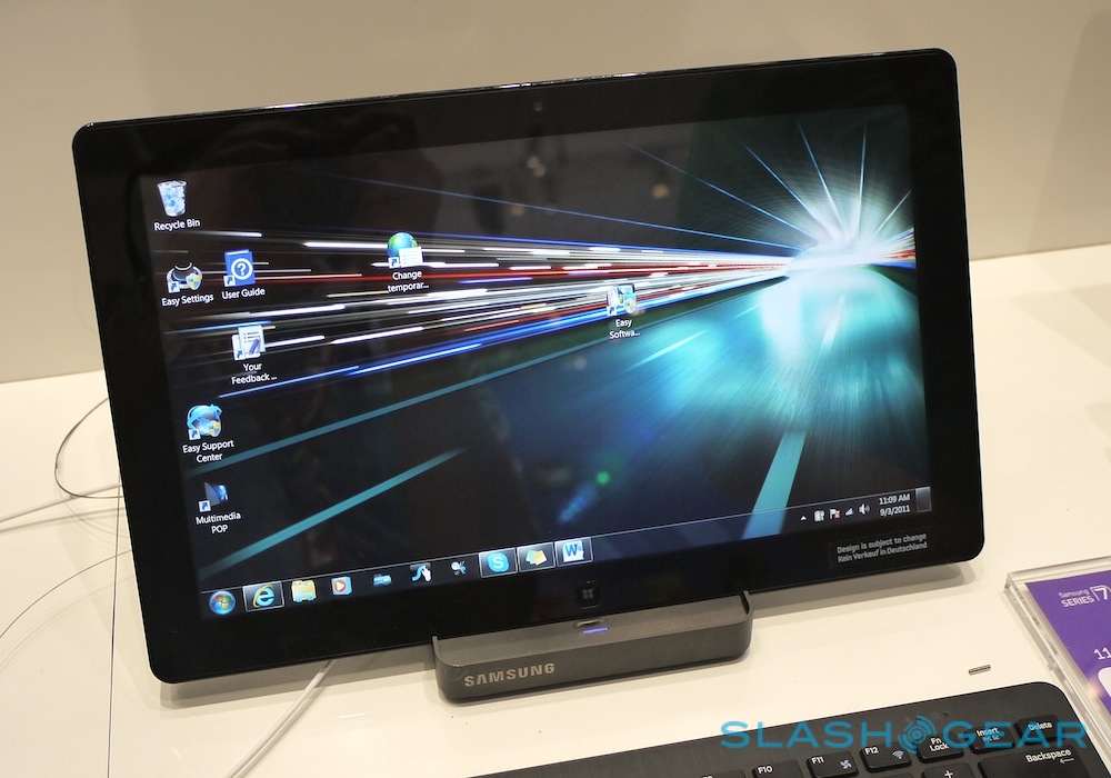 What's in a name? If you're Samsung, and you're trying to bide time until the more touchscreen-friendly Windows 8 arrives, then you launch the Samsung Series 7 Slate PC. The absence of "tablet" in the title, and conversely the specific mention of a slate form-factor PC, says it all: this is no iPad rival but a work or enterprise machine that just so happens not to have a keyboard. We grabbed some playtime at IFA 2011.