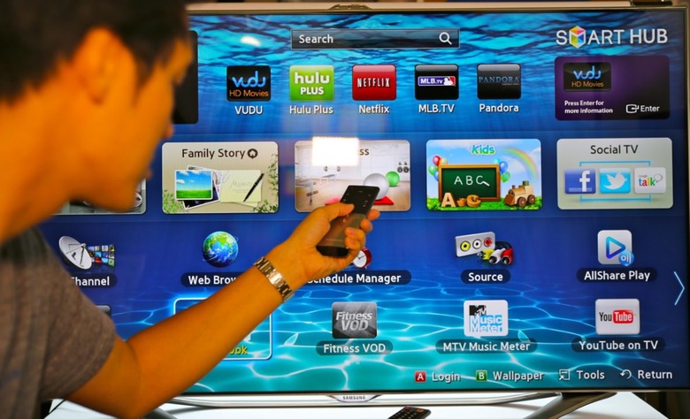 Voice commands are nothing without accuracy, and Samsung's system does a surprisingly solid job of recognizing and interpreting. Part of that is by shifting the microphone from the TV itself to the remote control, something likely to be closer to the user. Samsung's system recognizes addresses and commands like "Power On" to bring the set out of standby, though you still have to use the onscreen keyboard for URLs. Still, there's Bluetooth inside the set, and you can pair up any Bluetooth keyboard you might have – we tried an Apple keyboard, and it worked with no problems.