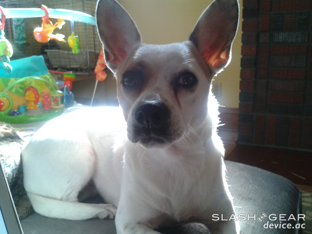 The camera on the front of the device is capable of a fairly standard 1.3 megapixels of quality that you'll basically just be using for video chat, while the back of the device's 5 megapixel camera can also record 720p quality video. Have a peek at a video recorded at top quality here, a photo at top quality as well, and a couple more photos in the gallery at the bottom of this post – you'll know em because they'll be the only ones that don't contain the phone itself as an image in them.