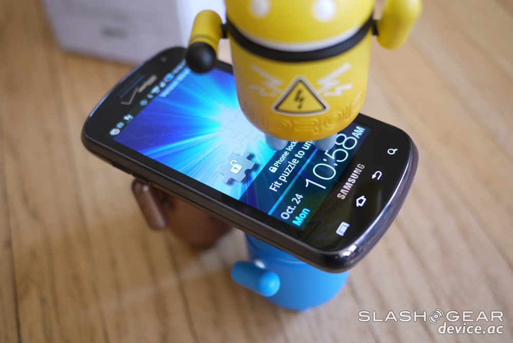 Samsung runs a user interface over stock Android that's called TouchWiz. This iteration of TouchWiz is not the most advanced of all Samsung devices released thus far, that'd be the Galaxy S II here in the USA, but it's fairly decent. It's slick, customizable to a degree, and has that ever-so-enjoyable puzzle unlock that you may have heard of if you've ever seen TouchWiz in action before. What it consists of is a set of puzzle pieces running across your screen, each of them corresponding to a phone call you've had, a message, or any number of alerts, including a simple path to your homescreen – the rest, when pulled and placed in the correct open puzzle piece hole, lead to the corresponding app.