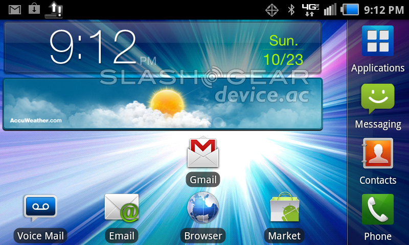 So what you've got here is a real competition between the Stratosphere and the Pantech Breakout if you want two devices that cost nearly the same. You've got the same 800 x 480 display at 4-inches (without Super AMOLED) and another 5-megapixel camera, a 1GHz processor (from Qualcomm this time) and some rather unique looking physical buttons. Pantech also provides a rather unique look at Android with their own user interface, this compared to the TouchWiz you'll see in the hands-on look at the Stratosphere here makes for an interesting one to one: