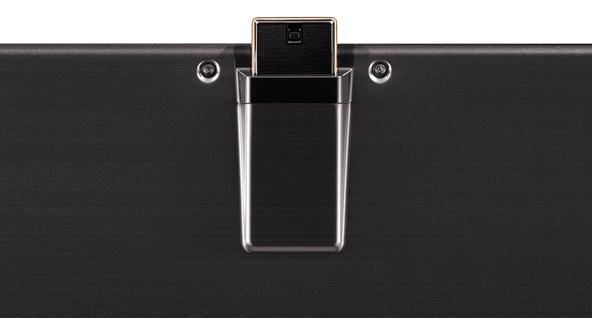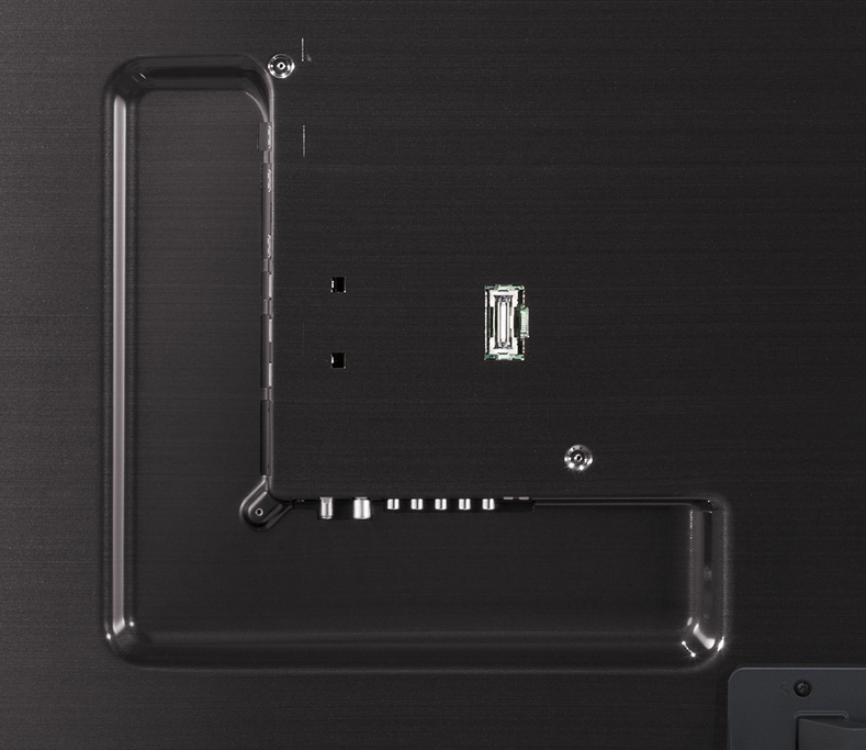Despite the dimensions, Samsung manages to fit in a fair amount of hardware. There are two 15W speakers, downward-firing, and integrated WiFi for hooking up the ES9000 to the internet wire-free. Other connections include three HDMI ports, three USB 2.0 ports, an ethernet port, component and composite inputs, a digital audio output (optical), a 3.5mm analog audio output, a DVI audio input, aerial port, and a serial port for Samsung's EX-LINK inter-device communication (with it, and the right accessories, you can have the TV trigger a motorized wall-mount or other add-ons).