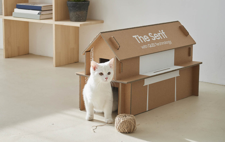 Samsung has introduced a new type of eco-friendly cardboard packaging that will be used with some of its new television models. These boxes are designed to transform into useful pieces of furniture, the most notable being the transformation into a small cat house. Samsung will include this packaging with its 'The Frame,' 'The Serif,' and 'The Sero' TV models.