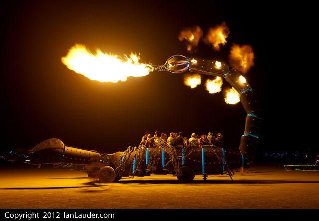 If you have ever seen stories or video shot on Burning Man held out in the desert each year, you may know that odd goes hand in hand with that event. An art car called Scorpion has been at the Burning Man even each year since 2011. It started life as a 1991 28-foot International boom truck before being turned into an art car by its builders.