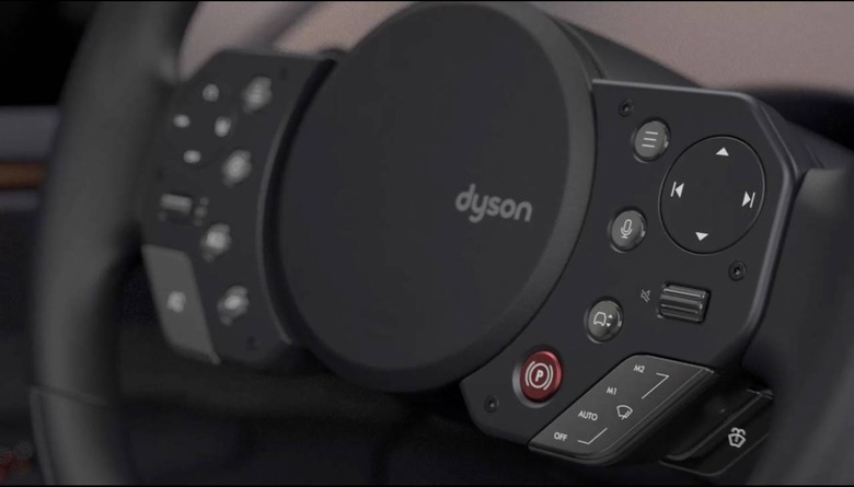 The distinctive steering wheel – somehow retro in its attempt to cluster all of the controls around the hub – was an intentional move by Dyson to reduce distractions. "I also never wanted anyone to have to take their eyes off the road," Dyson writes, "so that was my starting point – so we have a heads-up display and all the controls are on the steering wheel."