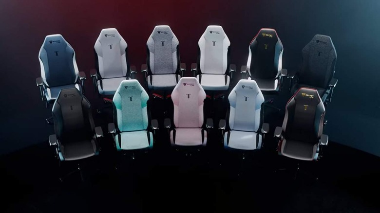 Secretlab SoftWeave Plus fabric is available in Arctic White, Cookies & Cream, BLACK3, Plush Pink, Mint Green, and Frost Blue, all on Secretlab Titan Evo