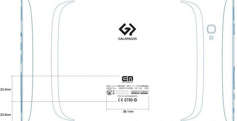 As for the Sharp slate, the FCC has few details of the Galapagos-branded slate, though the label diagram – shown above – does reveal a rear camera along with what looks like it could be an LED flash. The tapered edges obviously have plenty of ports and controls, too, though what exactly they are remains to be seen.