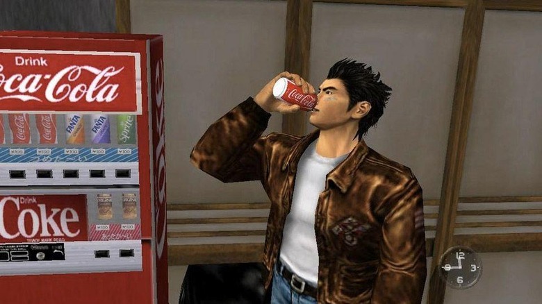 The first two Shenmue games featured a number of promotional tie-ins and licensed products making appearances in both the North American and European releases. While the first game's Coca-Cola vending machines from the Japanese release were removed before shipping overseas, there were still logos and items from companies like Timex, Toho, and Toshiba.