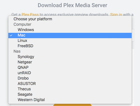 The Plex Media Server is the computer on which your movie collection is located; this can be your everyday laptop or computer, or can be a separate device that you'll setup somewhere and use exclusively as a media server. Some people use an old laptop or a small, cheap mini desktop as their Plex Media Server. Alternatively, there are many NAS units that can also be used as a Plex server. See the screenshot below for the full list: