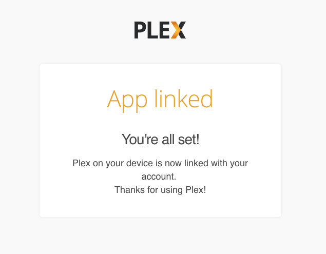After following the link shown on the screen (https://plex.tv/link/) and entering the code, the Plex app on your TV will refresh after a few moments and your Plex server content will appear on screen. You must make sure that your Plex server is up and running, however, or the TV app will tell you that it is "Unable to connect."