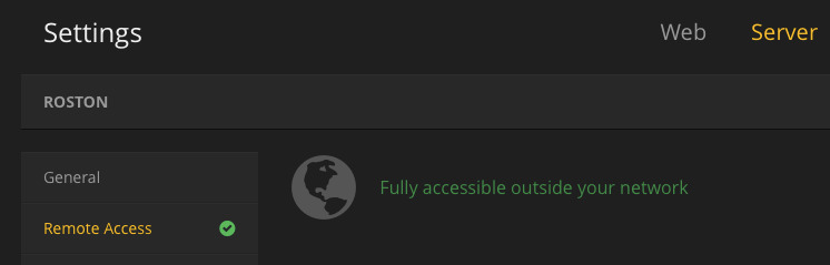 Plex will take a few moments, but once remote access is enabled, you'll see the following text: