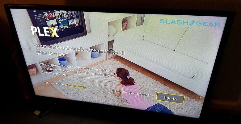 Once installed on your device, you'll see the sign-in screen shown above. Choose to sign-in, and the Plex app will give you a four-digit code to enter via a Web browser as shown below.