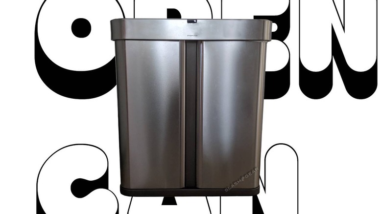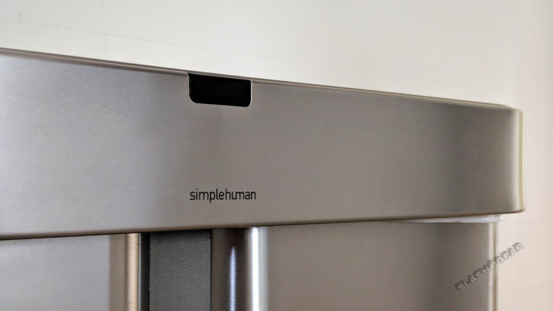 There's a voice control sensor and a motion sensor, too. When I spoke with simplehuman about getting a loaner review unit, here, I assumed we were getting one of the models that did not require electricity. I just wanted to see if one of the several simplehuman cans was able to do a better job than a $25 piece of plastic.