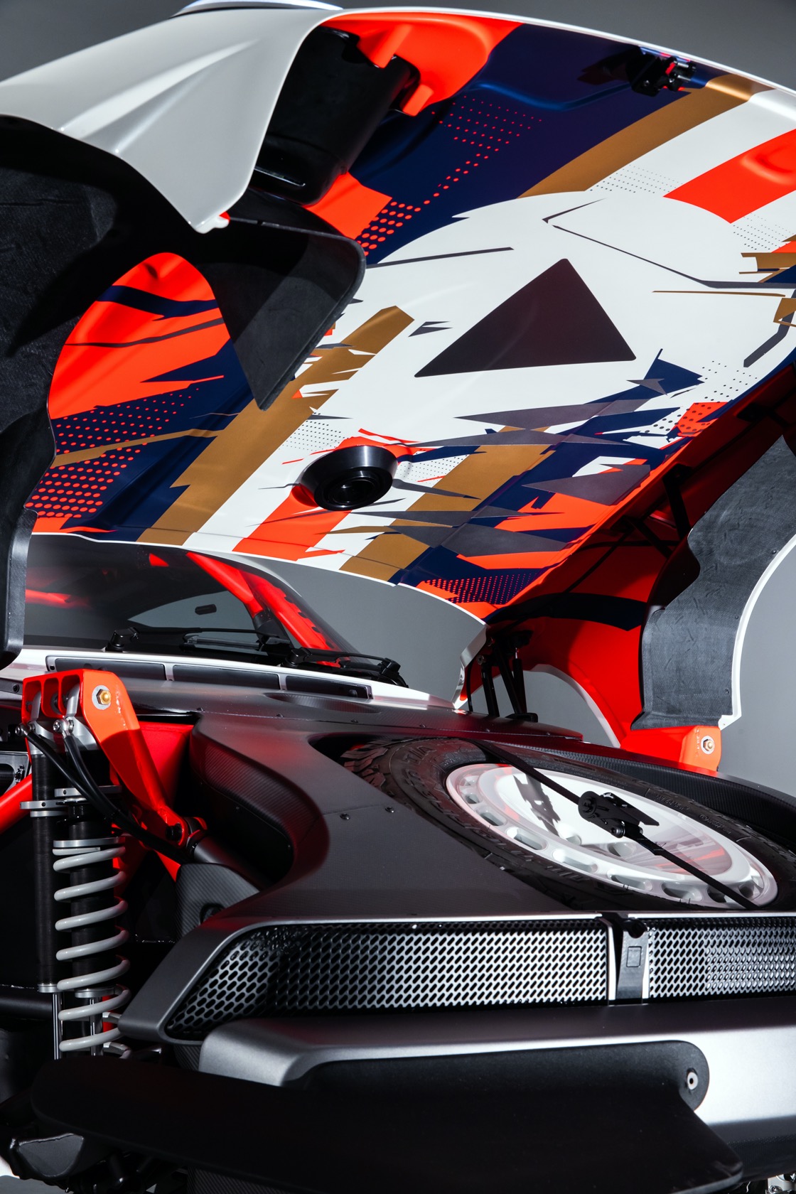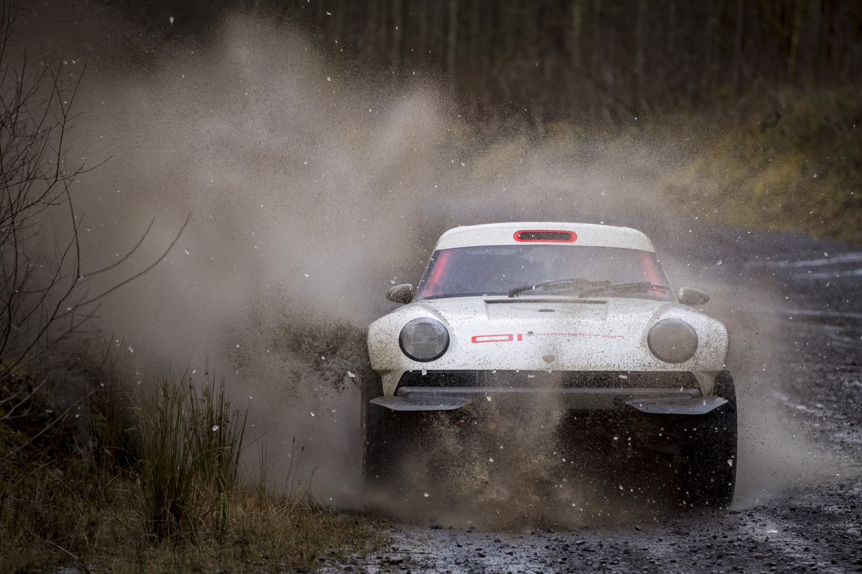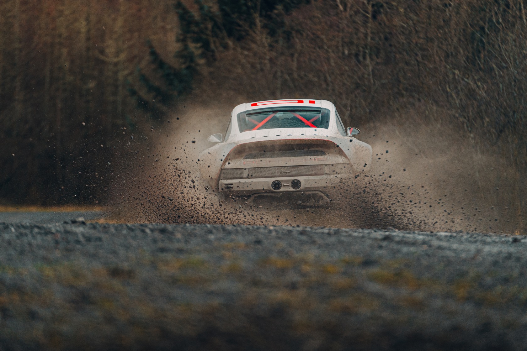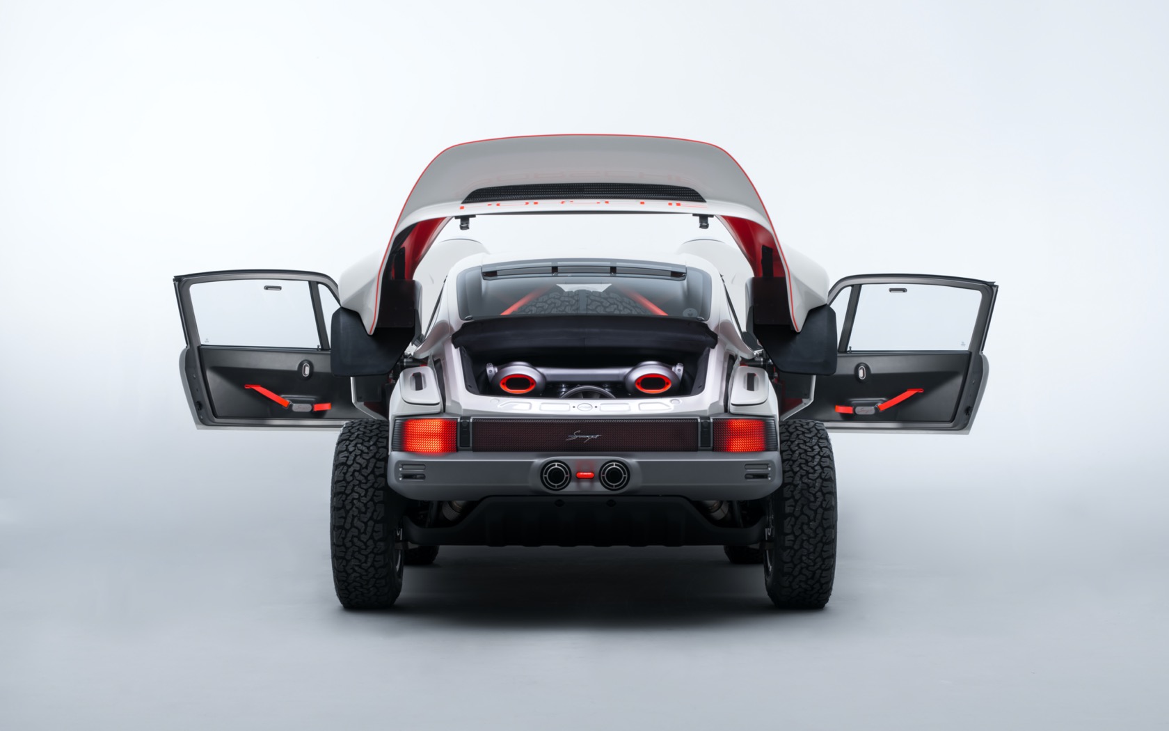 The engine is a 3.6-liter twin-turbo air-cooled flat-six, with 450 hp and 420 lb-ft of torque. Permanent AWD gets front, center, and rear limited-slip differentials, plus a racing-spec 5-speed sequential transmission. A long-range fuel tank ensures plenty of time away from the more humdrum world, and more out in the snow, rocks, and ice.
