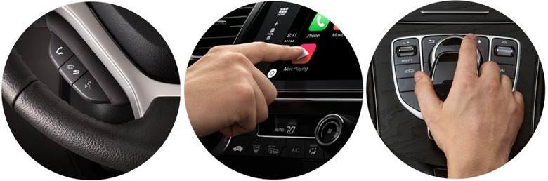 The car's own native controls – touchscreen, buttons on the steering wheel, scroll wheels down in the center console, or whatever else the vehicle has – will work to remotely navigate through CarPlay. However, Apple expects Siri to be the primary method of interaction, triggered with the voice-control button on the wheel and then given hands-free instructions.
