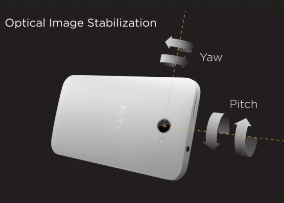 The HTC One's OIS works at an "unprecedented" frequency of 2000Hz and has been made small enough to fit inside the HTC One's relatively thin chassis. Working on two axis, this OIS detects pitch and yaw movements and counters them at 2000 times a second. Video quality is also significantly improved over past solutions as the OIS effectively removes background shakes and mimics smooth panning, top to bottom.