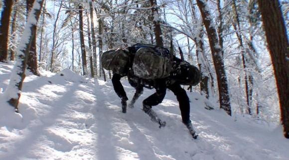 The BigDog project is funded by DARPA (the Defense Advanced Research Projects Agency) and aims to create a "robotic pack mule" that soldiers could use to carry large quantities of supplies and equipment across difficult terrain. Whereas tracked or wheeled robots might be defeated by loose ground or ice, BigDog's four independent hydraulic legs are articulated like an animals. That allows it to run at up to 4mph and climb up slopes of 35 degrees, even when carrying a 340lb load across mud, snow, water, and rubble.
