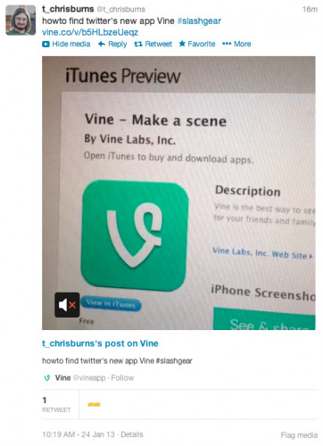You'll be able to download Vine from the iTunes App Store right this minute for free, if you feel the urge to jump in on this mini movie party – it's optimized for iPhone and iPod touch, but you can use it on your iPad too if you don't mind the tiny layout. This app will almost certainly be coming to Android very soon, and we wouldn't be surprised if Windows Phone 8 got a taste of the joy before Summer rolls around.
