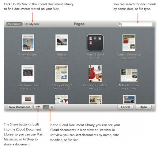 This feature was introduced several months ago to make connections between your desktop computer and your iDevices much simpler. Now with Mountain Lion you don't just have to rely on your web browser to deliver your various bits of media between devices. Documents in the Cloud allows instant updating of documents between devices with this new update, these documents sitting kindly on your Mac, updating with ease.