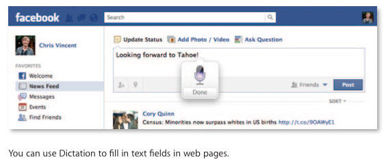 With Mountain Lion you can now speak out loud and have what you're saying instantly typed up by the system. "Talk anywhere you can type" is their new motto, and no training or setup of any new system is required to make it all so.