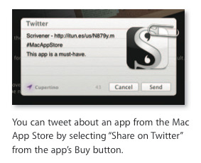 Like Facebook, you'll be able to quickly access Twitter from locations throughout this updated operating system. Tweet from your apps, sign in once to be able to share with Twitter from many places throughout your Mac, and get instant integration between the people you follow on Twitter and your Contacts list.