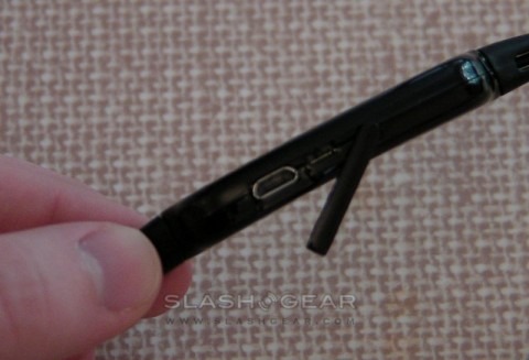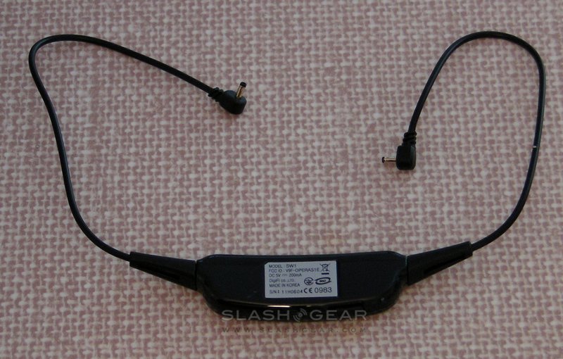 You can see our video unboxing and initial gallery here. Inside the box there's the wireless transmitter, a 4 x 2.5 x 1.1cm box with a single button, LED and protruding 3.5mm stereo plug, together with the receiver unit. That measures 6 x 2 x 0.8cm; roughly the same as three or four sticks of gum stacked. It's light, too, which is good as it sits at the back of your neck. A single button and LED, just like the transmitter, are the main controls. Under a narrow hatch on both there's a narrow port to plug in the double-headed USB recharging cable, plus a very fiddly main power switch.