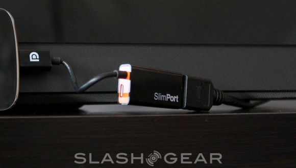 Last week we were told that the brand new LG Optimus G Pro would be carrying official MyDP standard connectivity in its microUSB port. With that, we heard from SlimPort that they'd be more than happy to let us have a peek at their technology in a rather simple-looking HDMI connector. As it turns out, LG was rather pumped up about this connectivity as well: