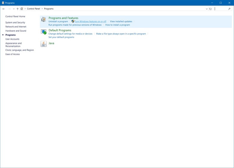 3. Select Turn Windows features on or off under Programs and Features.