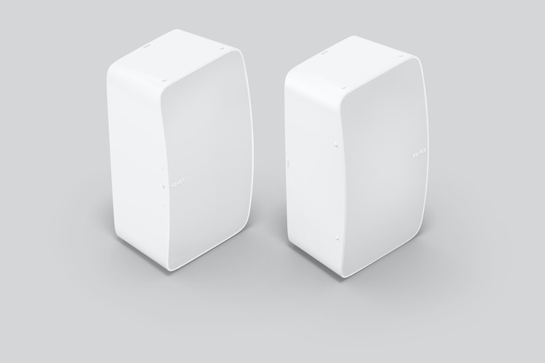 In fact, the Five is even more surreptitious on that front. The old white Play:5 still had a black grille, but this time around the white Five has a matching white grille. The Sonos logo is now color-matched, too.