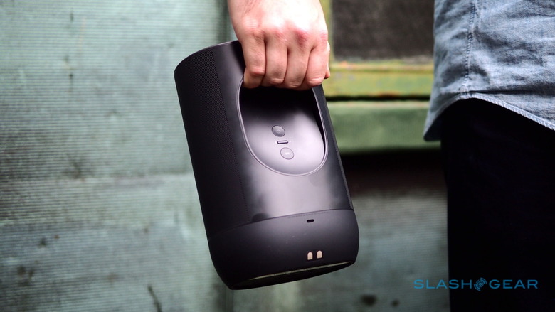 It's little details that help there, like the shape of the charging cradle ring which slides just enough to guide the speaker into place. The neat integration of the carry-handle on the rear, which not only makes toting the 6.61 pound speaker easy, but positions your hand in such a way that you won't inadvertently press the top-panel buttons in the process. If other Bluetooth speakers feel like rubberized toys, the Sonos Move feels as though some elegant piece of your lounge just happened to wander into the great outdoors.