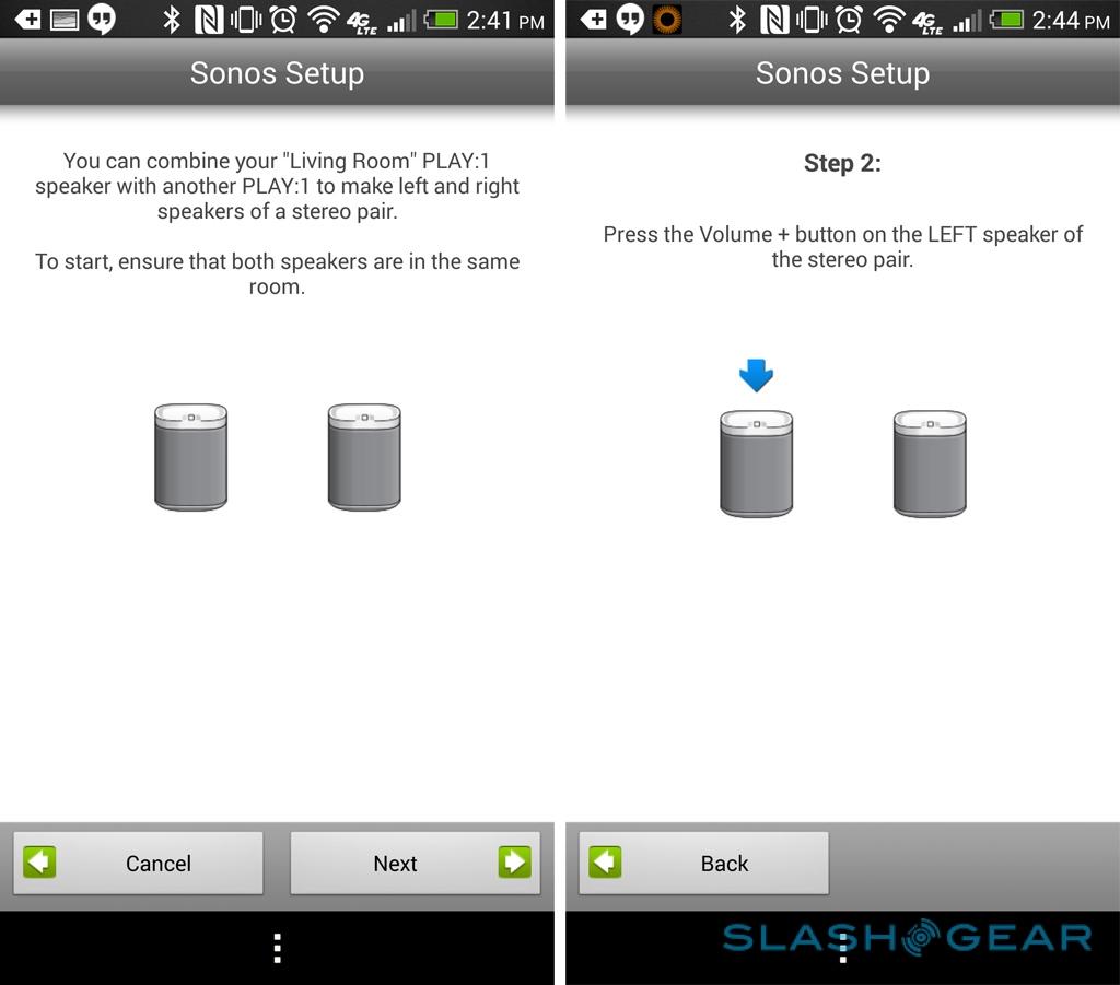 For those new to Sonos, there's a decision to be made. The company uses a proprietary wireless link between the speakers, and so requires bridging with your home router rather than piggy-backing on an existing WiFi network. To do that you can either plug one of the speakers into a spare ethernet port on your router, or you can use a $49 Sonos BRIDGE, to which all the PLAY components then link.